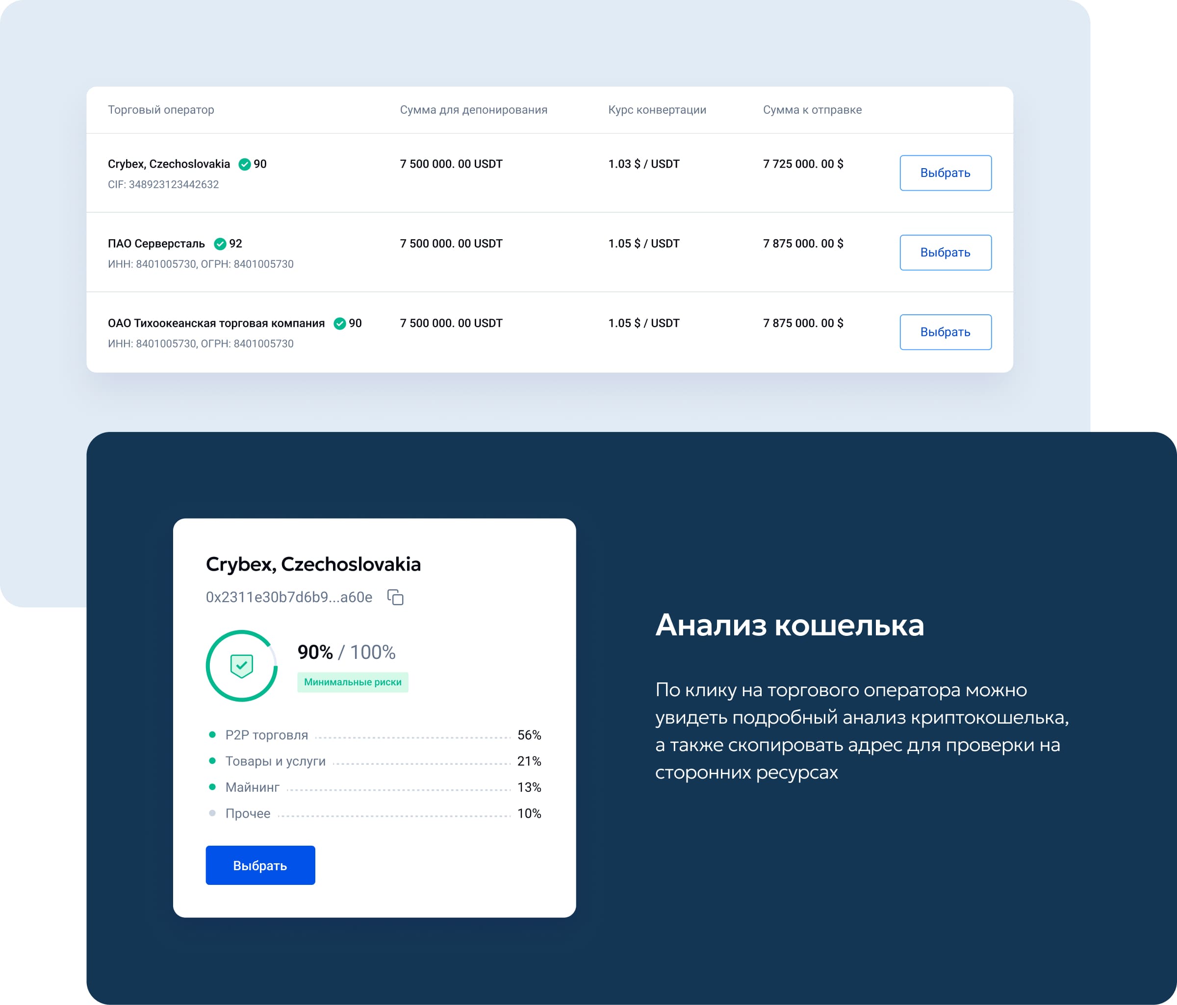 Предлагается выбор из списка тех торговых операторов, которые подходят под конкретную сделку: